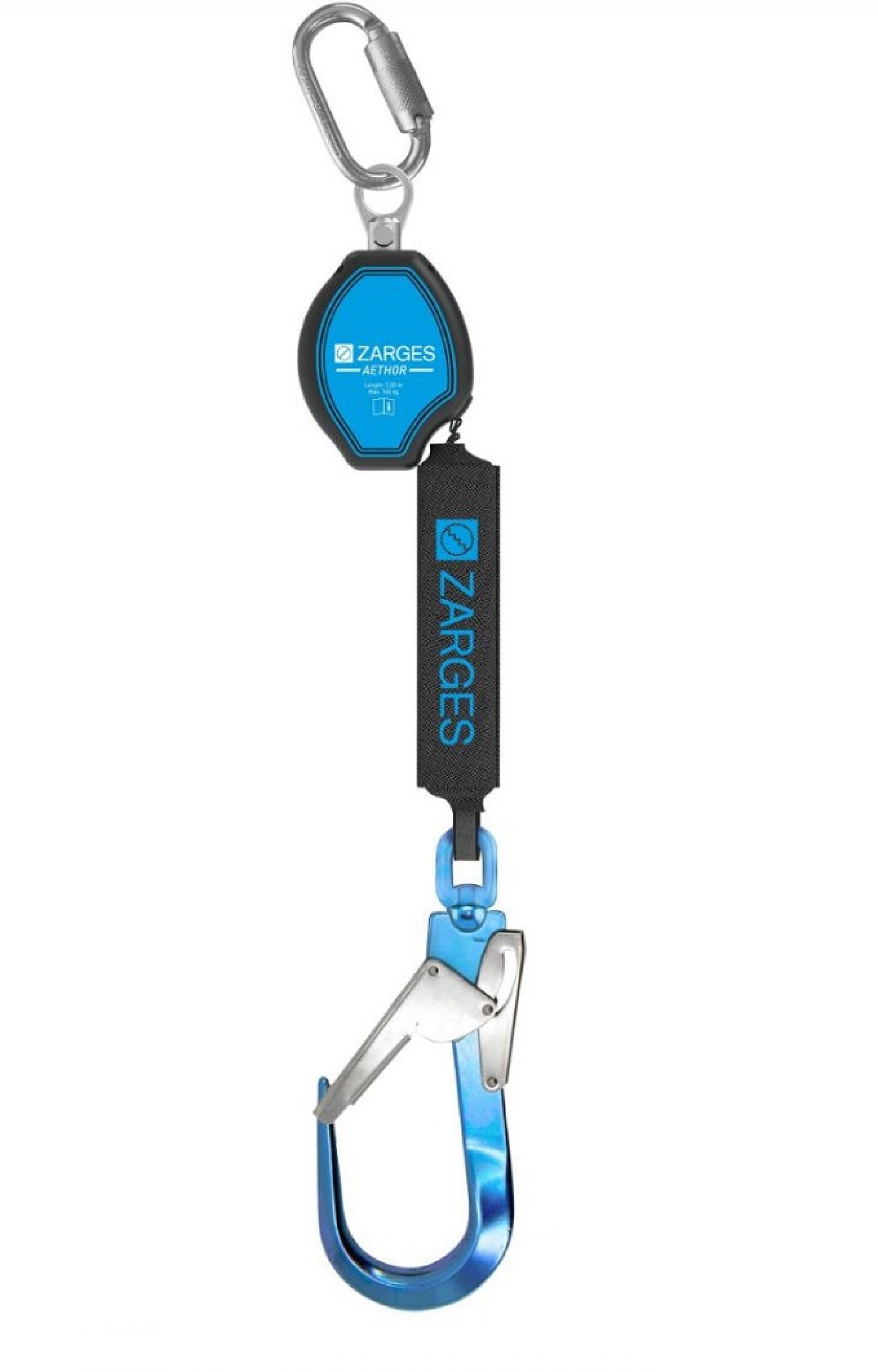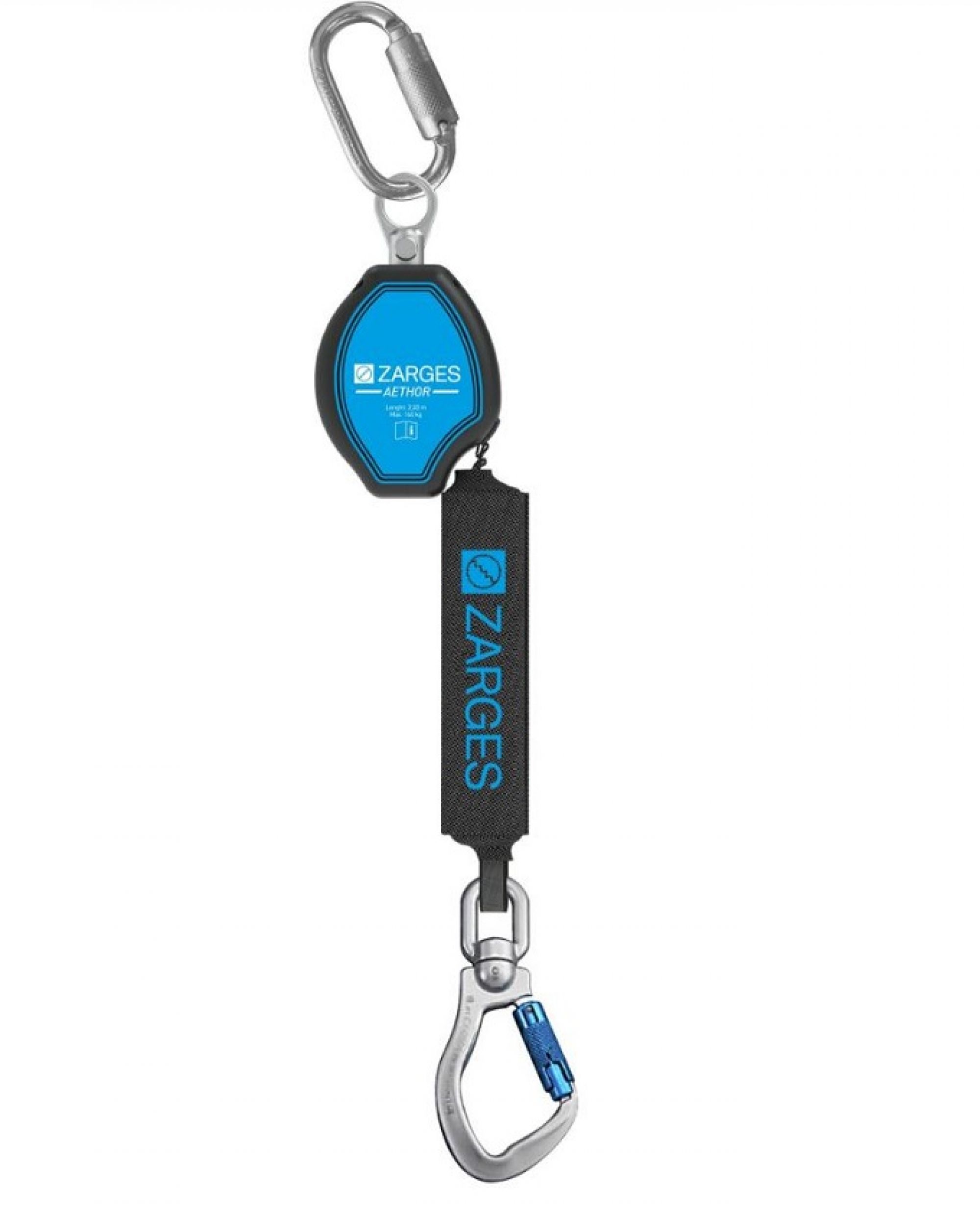 Das Höhensicherungsgerät AETHOR 1.8 entspricht EN 360:2002 und bietet eine ausgezeichnete Bewegungsfreiheit, während gleichzeitig die Fallstrecke kurz gehalten wird. Der automatische Seileinzug gewährleistet, dass lediglich die erforderliche Seillänge freigegeben wird, wodurch die Auffangstrecke in sämtlichen Situationen, sei es bei der Befestigung über Kopf (max 140kg) oder bei horizontalen Anwendungen (max 100kg), stets so kurz wie möglich ist. Dieses Gerät ist für den Einsatz in Situationen zertifiziert, in denen der Anschlagpunkt sich auf Bodenhöhe befindet (Fall Faktor 2) und ist darüber hinaus für Personen mit einem Gewicht von bis zu 140 kg geeignet. 1,8 m Länge für die Verwendung in Hubarbeitsbühnen (DIN 19427).